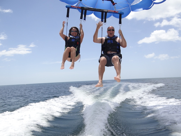 Gayle and I parasailing 350 feet above the Gulf of Mexico: