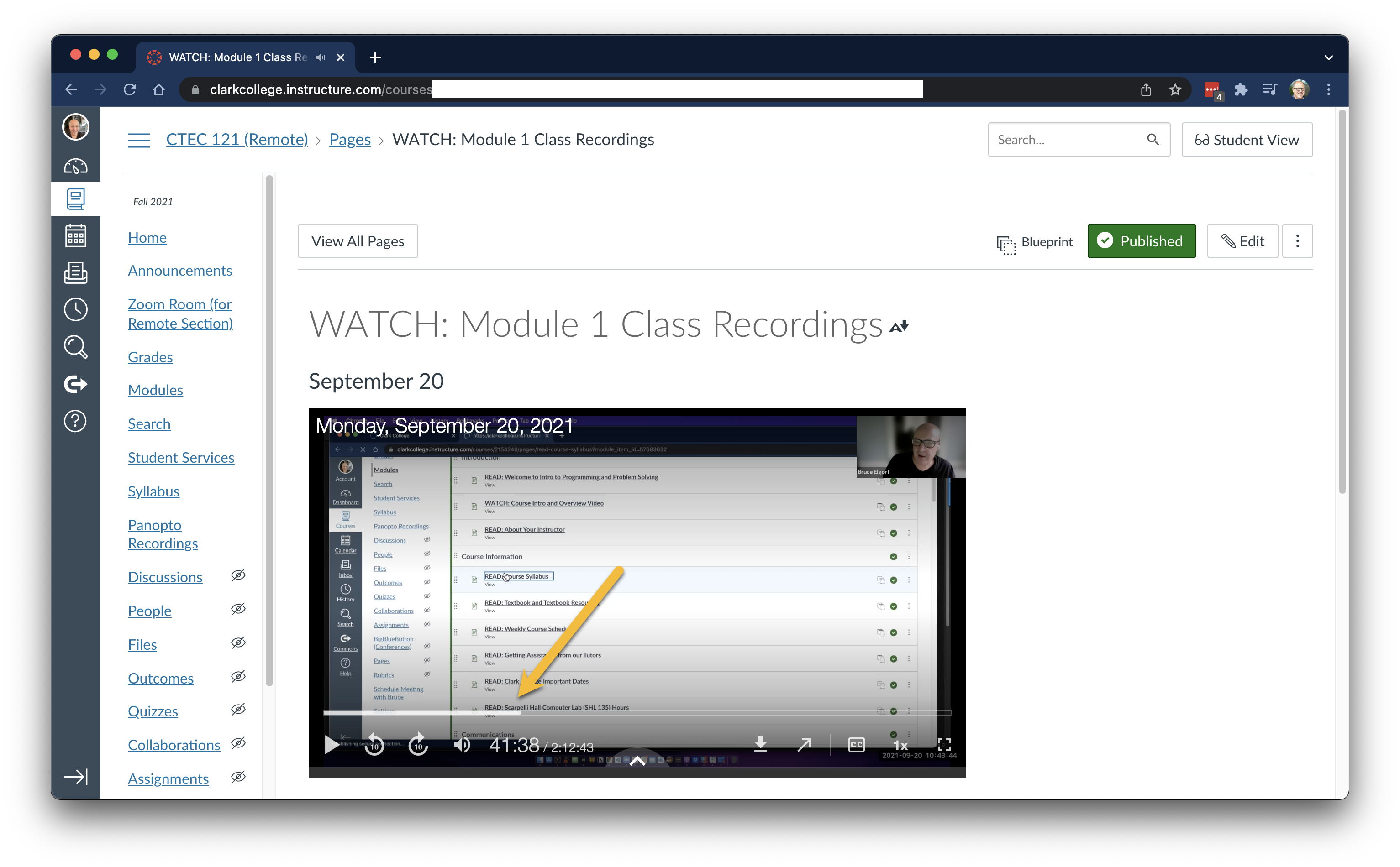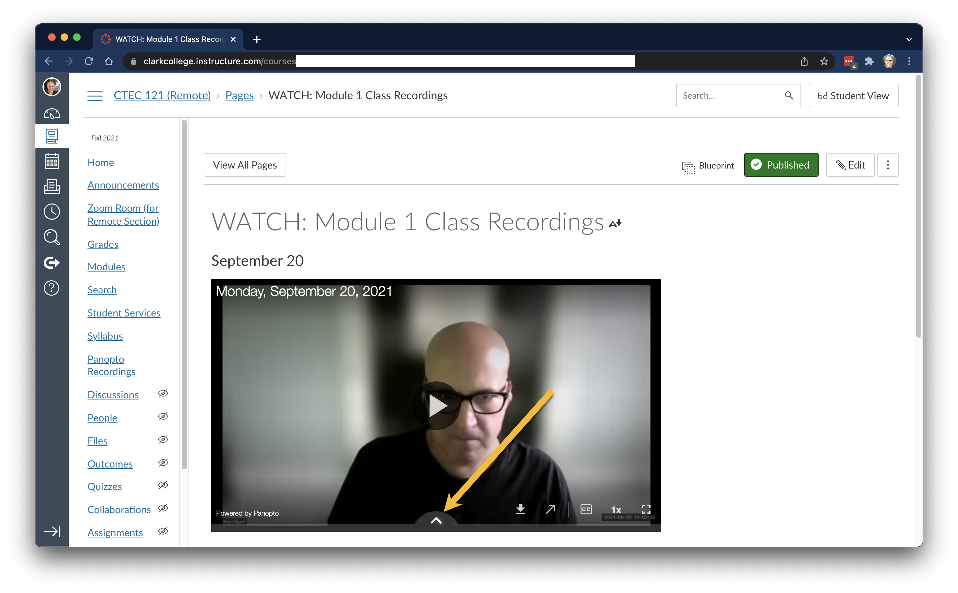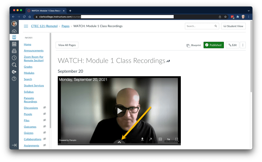 First off, take one of your class or meeting recordings and embed it into a page in Canvas. Once you have it embedded, view the page. Now you are ready to see the magic.