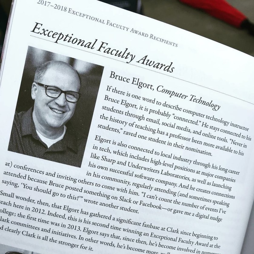 Last night at the Clark College Commencement ceremony I was recognized for receiving the “Exceptional Faculty Award”. There are 5 professors who received this award for the 2017/2018 academic year. There are over 600 faculty members at the college. I am very honored to have received this distinguished award. I want to thank my wife Gayle  Elgort for all her love and support. I’m also extremely grateful to the students who nominated me for this distinguished honor.